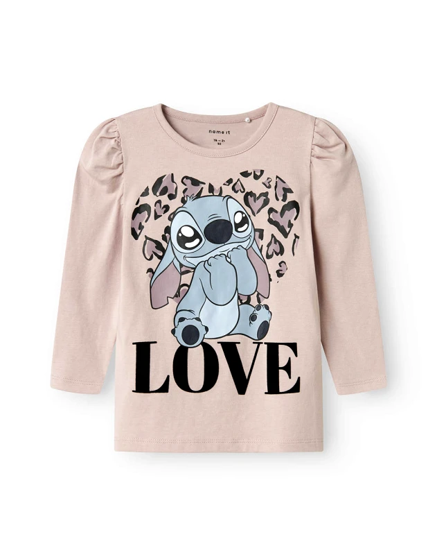Παιδική μπλούζα, σε κανονική γραμμή, μακρυμάνικη, με στρογγυλή λαιμόκοψη και τύπωμα Stitch μπροστά. (Σύνθεση: 95% Οργανικό βαμβάκι, 5% Ελαστάνη)