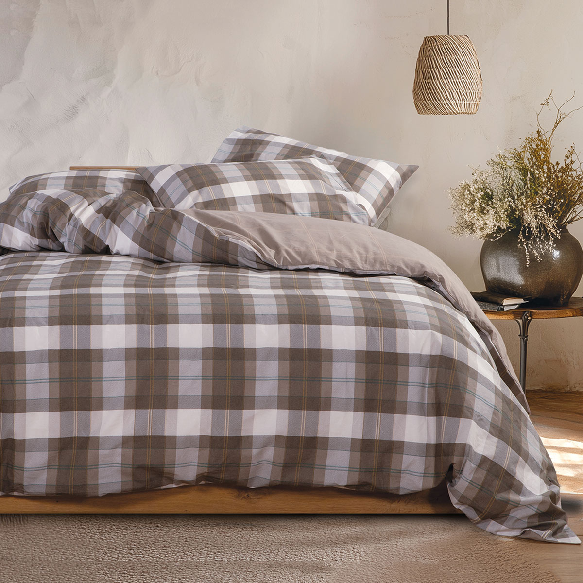 Σετ διπλά σεντόνια από την εταιρεία Nef-Nef σε λευκό χρώμα με διακριτικό φλοράλ σχέδιο και μπεζ λεπτομέρειες. Είναι κατασκευασμένα από 100% βαμβάκι περκάλι 200 κλωστών, που προσφέρει απαλότητα και ευκολία στο σιδέρωμα. Στο σετ περιλαμβάνονται οι μαξιλαροθήκες φάκελος.