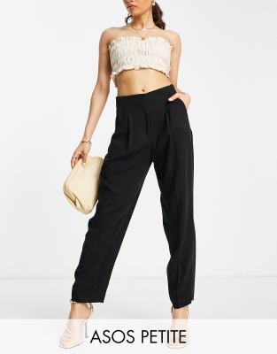 Petite trousers by ASOS DESIGN Treat your lower half High rise Side pockets Pleat detail Relaxed mom fit