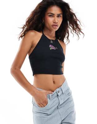 Tops by Santa Cruz Top-half options Halterneck style Graphic embroidery to chest Cropped length Slim fit