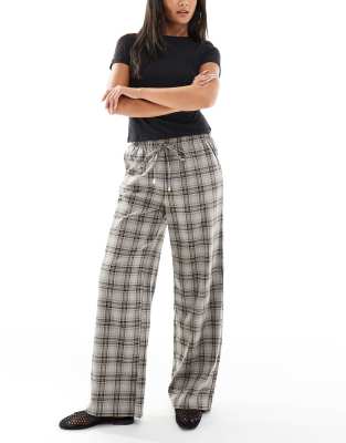 Trousers & Leggings by ONLY Check design Regular rise Elasticated drawstring waist Side pockets Wide leg