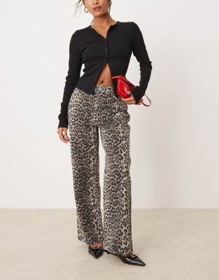 Jeans by New Look Petite We like your style Wide leg Animal print High rise Belt loops Five pockets