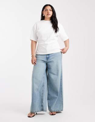 Jeans by ASOS Curve Wide leg High rise Belt loops Concealed fly Five pockets