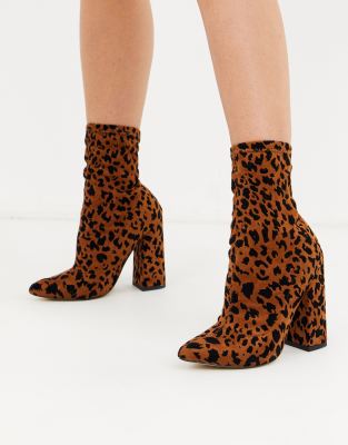 Boots by Missguided Pull on and go Leopard print Elasticated inserts Sock-boot style High heel