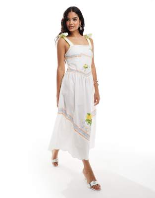 Dresses by Never Fully Dressed Let's hear it for the dress Square neck Tie straps Floral embroidery details Zip-side fastening Regular fit
