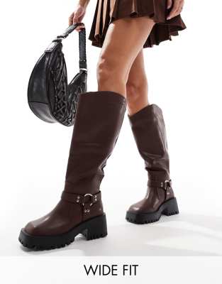 Επισκέψου το κατάστημα Asos για να δεις περισσότερες λεπτομέρειες και φωτογραφίες για το RAID Wide Fit Ultra biker knee boots with square toe in brown. Για αγορά του RAID Wide Fit Ultra biker knee boots with square toe in brown πρέπει να επισκεφτείς το κατάστημα Asos.