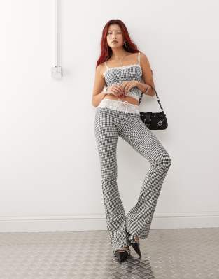 Trousers & Leggings by Lioness Part of a co-ord set Top sold separately Low rise Lace trim Flared slim fit