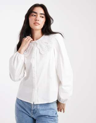 Tops by New Look Embroidered collar Button placket Blouson sleeves Regular fit