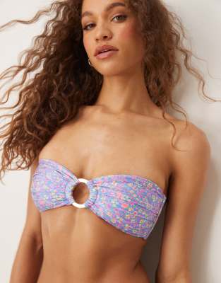 Swimwear & Beachwear by Kulani Kinis Out of office: on Floral design Bandeau style Ring detail Tie fastening