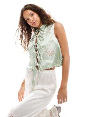 Επισκέψου το κατάστημα Asos για να δεις περισσότερες λεπτομέρειες και φωτογραφίες για το Reclaimed Vintage tie front top with lace detail-Green. Για αγορά του Reclaimed Vintage tie front top with lace detail-Green πρέπει να επισκεφτείς το κατάστημα Asos.