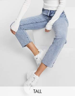 Tall jeans by New Look It's all in the jeans Mid-rise Belt loops Five pockets Raw-cut hem Sits on the ankle Straight fit Regular on the waist