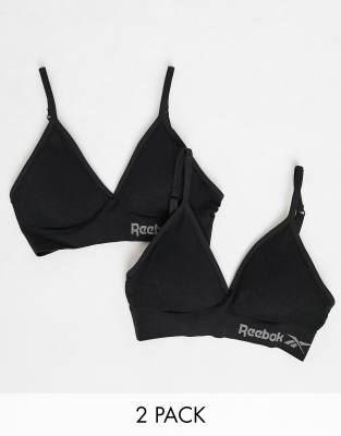Sports bra multipack by Reebok Get the right support Pack of two Seamless design helps minimise chafing V-neck Removable padding Elasticated underband for a secure fit Reebok logo details Adjustable straps Racer back for unrestricted movement Pull-on style