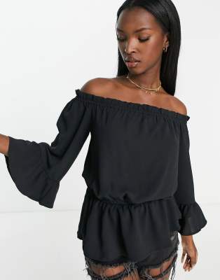 Top by In The Style Collaboration with Jacqueline Jossa Off-shoulder style Flared sleeves Frill trims Regular fit
