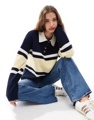 Επισκέψου το κατάστημα Asos για να δεις περισσότερες λεπτομέρειες και φωτογραφίες για το Daisy Street knitted slouchy fit rugby polo in yellow navy stripe-Multi. Για αγορά του Daisy Street knitted slouchy fit rugby polo in yellow navy stripe-Multi πρέπει να επισκεφτείς το κατάστημα Asos.