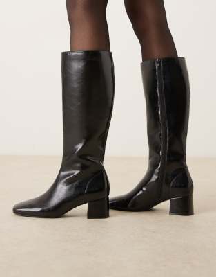 Shoes by ASOS DESIGN Knee-high style Zip-side fastening Square toe Mid block heel
