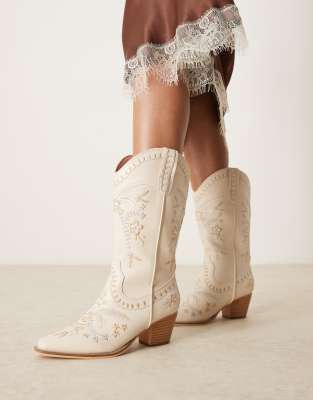 Επισκέψου το κατάστημα Asos για να δεις περισσότερες λεπτομέρειες και φωτογραφίες για το Glamorous embroidered western knee boots in cream-White. Για αγορά του Glamorous embroidered western knee boots in cream-White πρέπει να επισκεφτείς το κατάστημα Asos.
