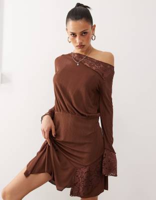 Dresses by Reclaimed Vintage Exclusive to ASOS One-shoulder style Long sleeves Lace inserts Regular fit