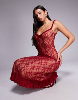 Επισκέψου το κατάστημα Asos για να δεις περισσότερες λεπτομέρειες και φωτογραφίες για το Tiger Mist Deja 90s lace ruffle trim bow detail midi dress in red. Για αγορά του Tiger Mist Deja 90s lace ruffle trim bow detail midi dress in red πρέπει να επισκεφτείς το κατάστημα Asos.
