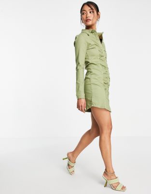 Επισκέψου το κατάστημα Asos για να δεις περισσότερες λεπτομέρειες και φωτογραφίες για το Fae button through ruched denim shirt mini dress in olive green. Για αγορά του Fae button through ruched denim shirt mini dress in olive green πρέπει να επισκεφτείς το κατάστημα Asos.