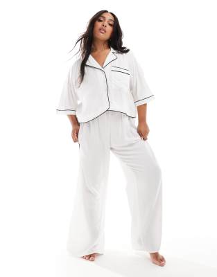 Επισκέψου το κατάστημα Asos για να δεις περισσότερες λεπτομέρειες και φωτογραφίες για το ASOS DESIGN Curve super soft slinky wide leg pyjama trouser in white with contrast binding. Για αγορά του ASOS DESIGN Curve super soft slinky wide leg pyjama trouser in white with contrast binding πρέπει να επισκεφτείς το κατάστημα Asos.