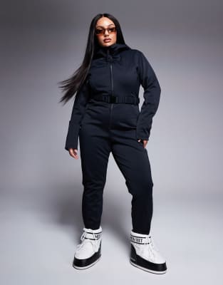 Curve & Plus Size by ASOS 4505 Ski & Snow We’re just here for the après-ski Fixed hood High collar Taped Zip fastening Belted waist Zipped underarm vents for ventilation Over-the-thumb cuffs to prevent snow going up the sleeves Zipped ski pass pocket Skinny fit