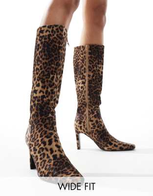 Shoes by Public Desire Wide Fit Adding to bag in 3 2 1… Animal print Pull-on style Zip-side fastening Pointed toe High block heel Wide fit