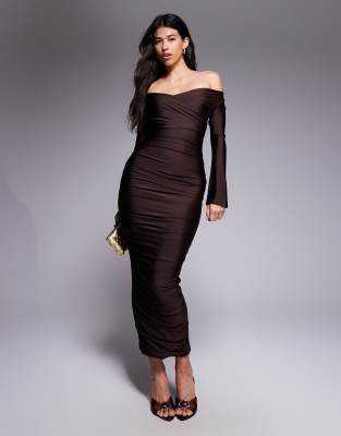 Επισκέψου το κατάστημα Asos για να δεις περισσότερες λεπτομέρειες και φωτογραφίες για το Ruched & Ready You Wish sculpted high shine off shoulder sweetheart neck maxi dress in chocolate-Brown. Για αγορά του Ruched & Ready You Wish sculpted high shine off shoulder sweetheart neck maxi dress in chocolate-Brown πρέπει να επισκεφτείς το κατάστημα Asos.