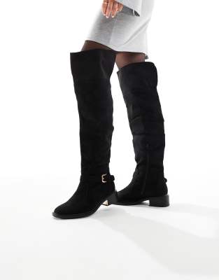 Shoes by SEQWL Wide Fit Plain design Over-the-knee style Adjustable strap Round toe Flat sole Wide fit