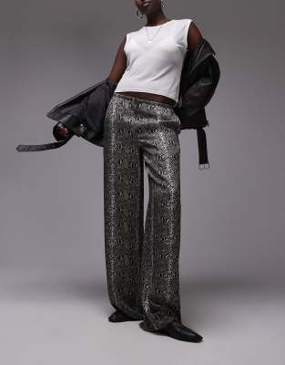 Trousers & Leggings by Topshop Tall This is Topshop Animal print Regular rise Drawstring waistband Side pockets Wide leg