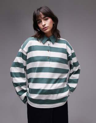 Επισκέψου το κατάστημα Asos για να δεις περισσότερες λεπτομέρειες και φωτογραφίες για το Topshop stripe long sleeve polo top in green. Για αγορά του Topshop stripe long sleeve polo top in green πρέπει να επισκεφτείς το κατάστημα Asos.