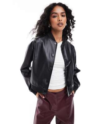 Επισκέψου το κατάστημα Asos για να δεις περισσότερες λεπτομέρειες και φωτογραφίες για το Style Cheat PU button up bomber jacket in black. Για αγορά του Style Cheat PU button up bomber jacket in black πρέπει να επισκεφτείς το κατάστημα Asos.