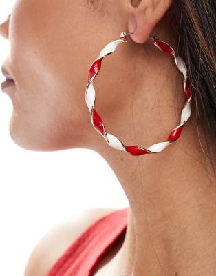 Accessories by ASOS DESIGN Worth the attention Hoop style Candy-cane design Twisted detail Clicker fastening Product is non-returnable for hygiene reasons