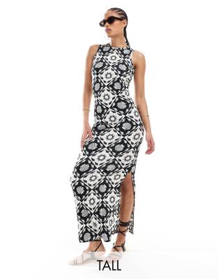 Dresses by ONLY Tall For your weekend mood board All-over print High neck Racer cut Side split Bodycon fit