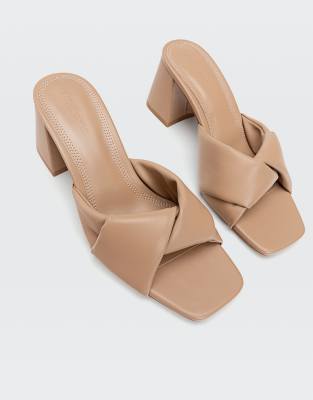 Mules by Stradivarius Free your feet Slip-on style Twist strap Peep toe Mid block heel