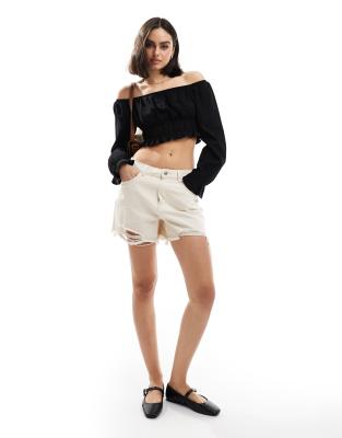 Tops by Stradivarius Stay on top of it Off-shoulder style Long sleeves Cropped length Regular fit