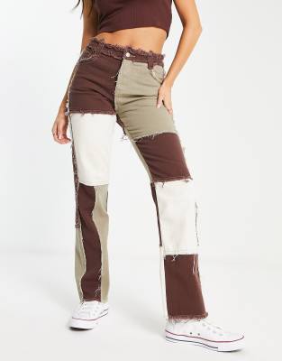 Jeans by Jaded London The denim of your dreams Boyfriend fit Patchwork design High rise Belt loops Functional pockets Raw-cut hem