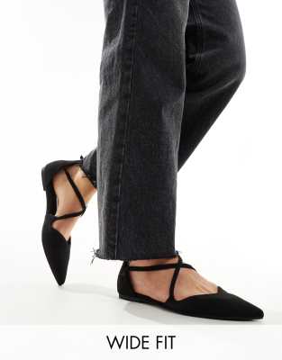 Shoes by ASOS DESIGN Wide Fit Adding to bag in 3 2 1… Pin-buckle fastening Adjustable strap Pointed toe Flat sole Wide fit