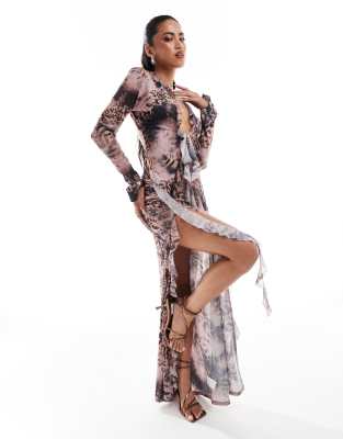 Co-ords by Murci Includes a shirt and skirt Animal print Regular-fit shirt Plunge neck Long sleeves Ruffle details Regular-fit skirt High rise Elasticated waistband Thigh-high split