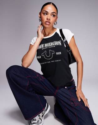 Επισκέψου το κατάστημα Asos για να δεις περισσότερες λεπτομέρειες και φωτογραφίες για το True Religion logo detail raglan baby tee in black & white. Για αγορά του True Religion logo detail raglan baby tee in black & white πρέπει να επισκεφτείς το κατάστημα Asos.