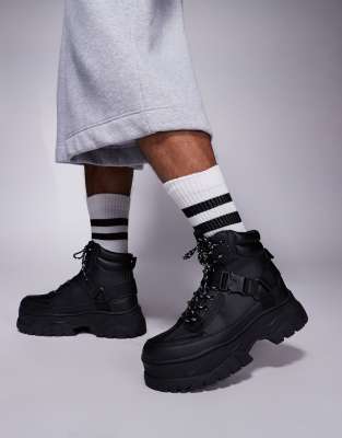 Shoes Boots & Trainers by ASOS DESIGN That all-year-round one Pull tabs for easy entry Lace-up fastening Padded cuff Adjustable strap Round toe Chunky sole Lugged tread
