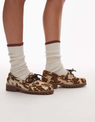 Shoes by Bronx Cow print Lace-up fastening Round toe Low block heel Lugged tread