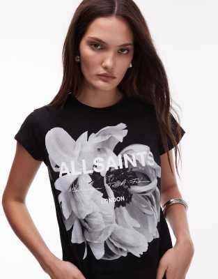 Tops by AllSaints Crew neck Short sleeves AllSaints branded text with flower graphic print on front Regular fit