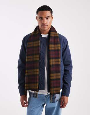 Accessories by Fred Perry Tartan design Rectangular cut Logo embroidery Fringed ends