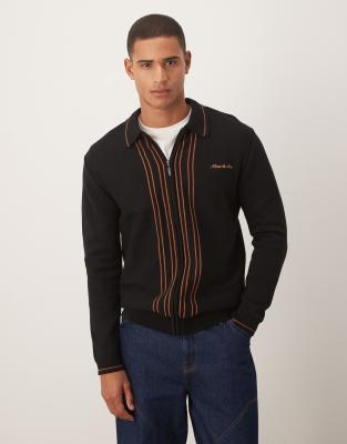 Jackets & Coats by Alma De Ace Striped intarsia trims Spread collar Zip fastening Logo embroidery Ribbed trims Regular fit