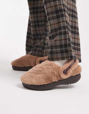 Shoes by Crocs Faux fur design Slip-on style Hinged heel strap for a secure fit Signature Crocs branding Croslite footbed moulds to your foot for a custom fit and improved arch support Lightweight non-marking sole