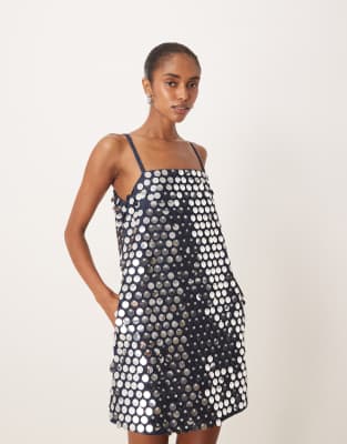 Dresses by Ghospell Sequin embellished Square neck Fixed straps Side pockets Relaxed fit