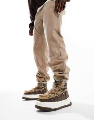 Shoes Boots & Trainers by ASOS DESIGN Peak style Faux-fur design Lace-up fastening Round toe Chunky sole