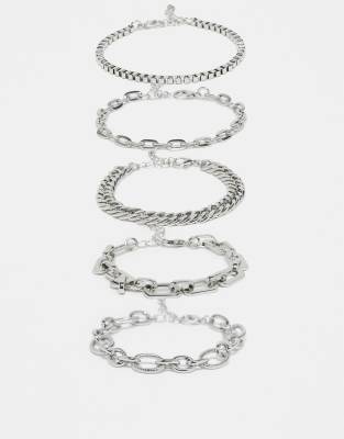 Επισκέψου το κατάστημα Asos για να δεις περισσότερες λεπτομέρειες και φωτογραφίες για το ASOS DESIGN pack of 5 mixed chain stacking bracelets in silver tone. Για αγορά του ASOS DESIGN pack of 5 mixed chain stacking bracelets in silver tone πρέπει να επισκεφτείς το κατάστημα Asos.