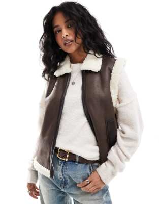 Επισκέψου το κατάστημα Asos για να δεις περισσότερες λεπτομέρειες και φωτογραφίες για το ONLY aviator shearling gilet in brown. Για αγορά του ONLY aviator shearling gilet in brown πρέπει να επισκεφτείς το κατάστημα Asos.