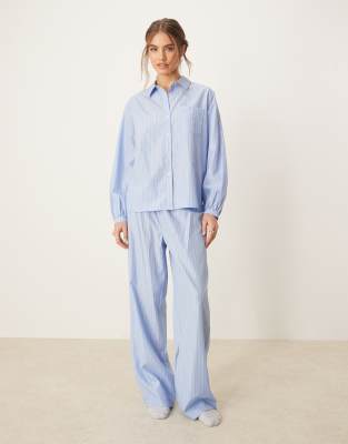 Lingerie & Nightwear by Urban Threads Includes a shirt and trousers Stripe design Oversized-fit shirt Spread collar Button placket Long sleeves Chest pocket Wide-leg trousers Elasticated waistband
